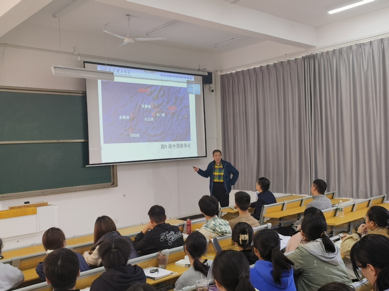 讲座伊始,为让大家更加深刻的理解国防的重要意义,王昌明教授讲述了当今世界武器装备和政治军事变化,分析了中国的地缘政治和近年来的中国与邻国的矛盾冲突,从而引出我国在新型特种装备研发上的重要性与必要性。王昌明教授以水下轻型武器为切入点,采取互动提问的方式与现场同学进行交流,增强了同学们对这次讲座的兴趣和期待,瞬间提升了讲座现场的氛围。