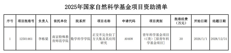 近日,国家自然科学基金委员会发布了《关于2025年国家自然科学基金集中接收申请项目评审结果的通告》,我校william威廉亚洲官方李栋梁老师申报的项目获得青年科学基金项目(C类)资助,资助经费30万元。